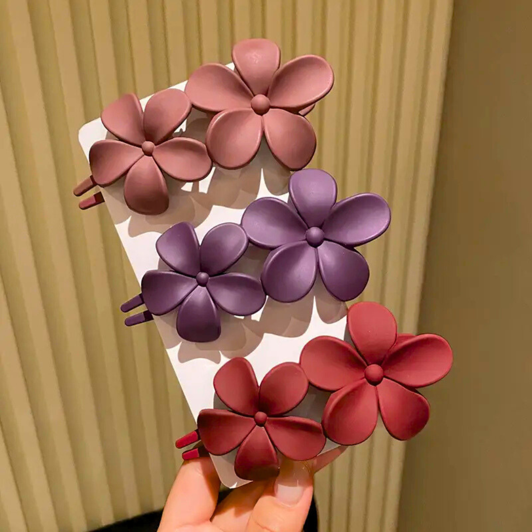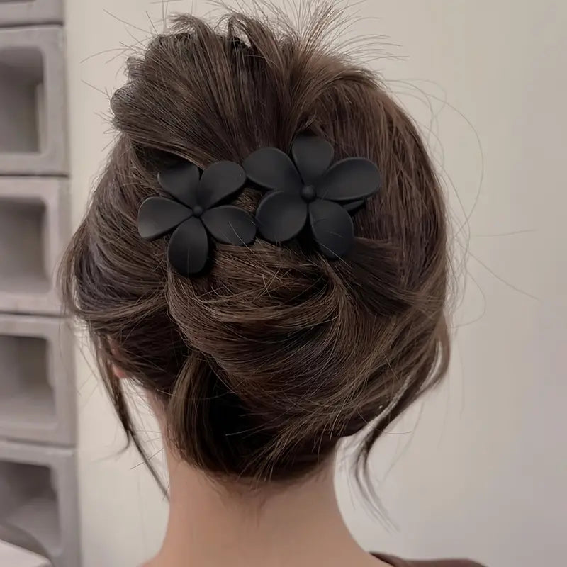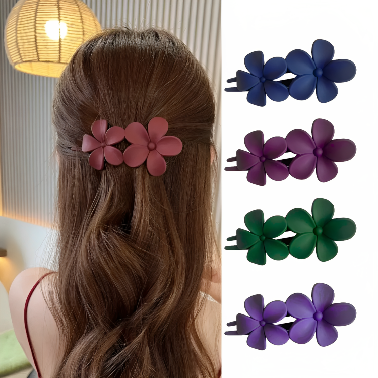 Add a touch of elegance to your hairstyle with the Blossom Chic Hair Clip. These charming matte flower clips come in a variety of rich, muted tones—burgundy, brown, black, purple, and navy—perfect for any occasion. Crafted with soft-touch materials, the dual-flower design effortlessly secures hair while enhancing your look with a whimsical, feminine flair. Whether you're dressing up for a night out or adding flair to your everyday style, these clips offer both functionality and fashion. Ideal for all hair types, the Blossom Chic clips make a lovely gift or a stylish addition to your collection.
