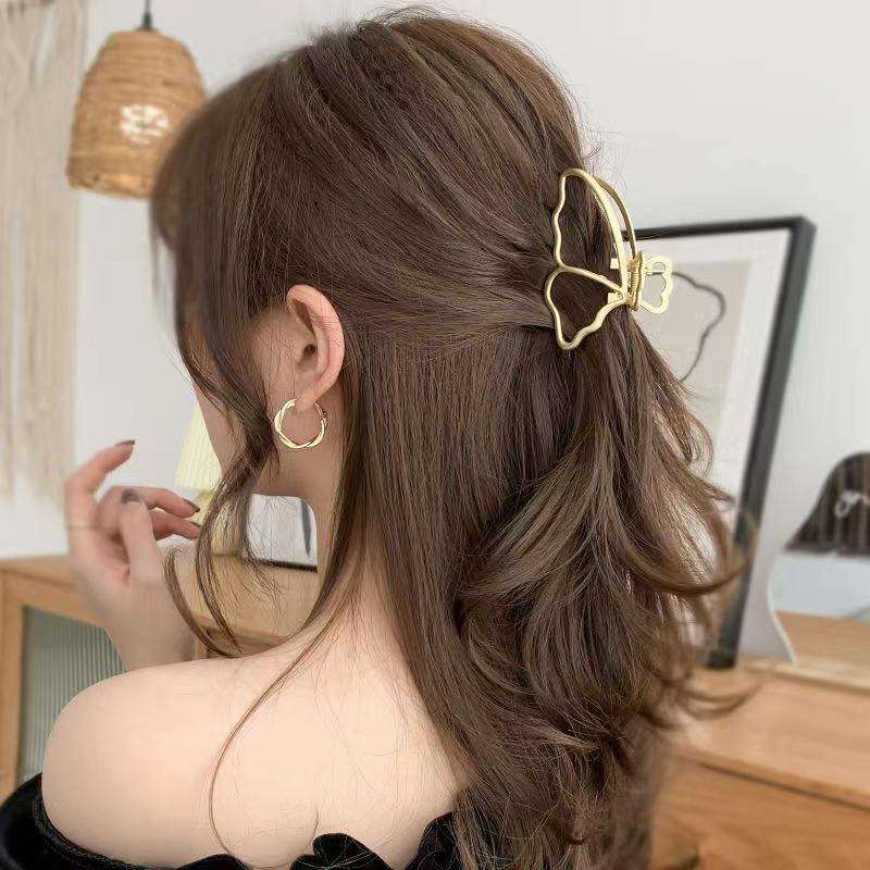 A statement gold butterfly hair clip that blends elegance with whimsy. Its shimmering finish and intricate wing details add a touch of luxury, perfect for elevating everyday hairstyles or special occasions. Lightweight yet secure, this Golden Butterfly Charm holds hair effortlessly while serving as a chic accessory.